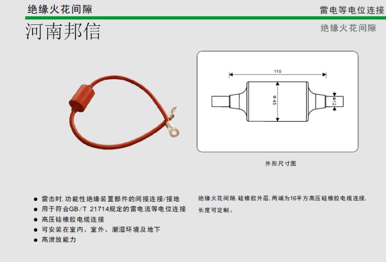 隨著管網配套設施的不(bu)斷完(wan)善,絕(jue)緣(yuan)接(jie)(jie)頭在管道(dao)的引(yin)出(chu)端使用(yong)的案例也越(yue)來越(yue)多(duo),絕(jue)緣(yuan)接(jie)(jie)頭的保(bao)護作用(yong)也是(shi)顯而(er)易(yi)見的。但(dan)是(shi)隨著絕(jue)緣(yuan)接(jie)(jie)頭的應(ying)用(yong),也相應(ying)出(chu)現(xian)了一些隱(yin)患,其中(zhong)過電(dian)(dian)(dian)壓擊(ji)穿絕(jue)緣(yuan)接(jie)(jie)頭是(shi)容易(yi)出(chu)現(xian)的故障點之(zhi)一。現(xian)有(you)的過電(dian)(dian)(dian)壓保(bao)護產(chan)品有(you)金屬氧化物避雷(lei)器(qi)、鋅接(jie)(jie)地(di)電(dian)(dian)(dian)池以(yi)及放電(dian)(dian)(dian)間隙類(lei)產(chan)品,而(er)通過性能(neng)比較,使用(yong)火花間隙類(lei)產(chan)品的保(bao)護方案。