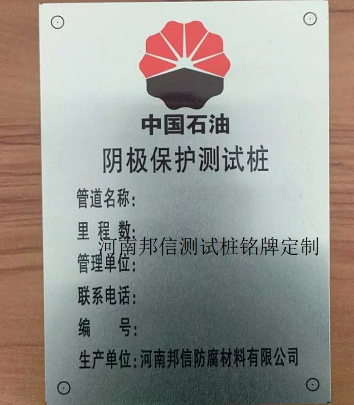 邦信陰極(ji)保護測試樁銘(ming)牌(pai)用鋁板(ban)/不銹鋼板(ban)制作