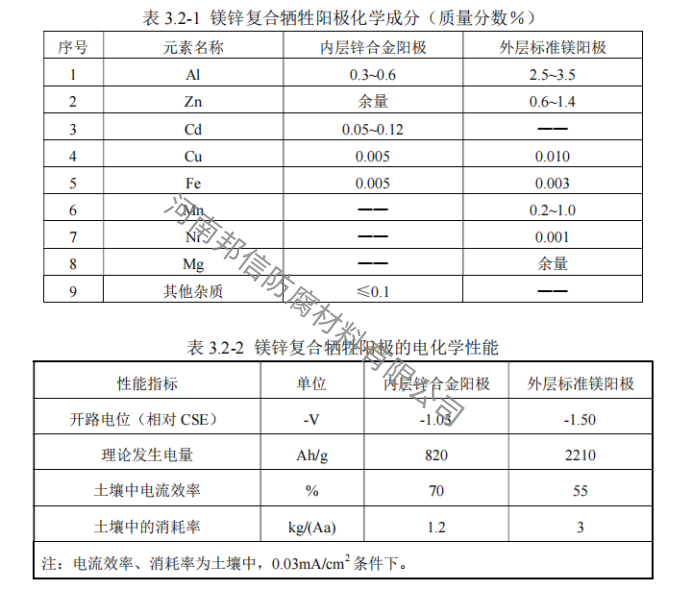 河(he)南邦(bang)信鎂(mei)鋅復合陽極外(wai)層鎂(mei)陽極和內部(bu)鋅陽極接觸(chu)電阻應低于 0.001Ω。鎂鋅(xin)復合(he)陽極內(nei)部Φ12