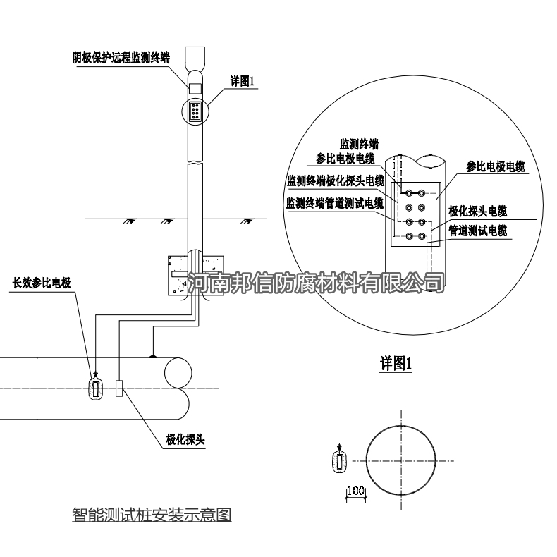 陰極保(bao)護遠(yuan)程監(jian)測(ce)智能測(ce)試樁(zhuang)安裝和接線(xian)示意圖(tu)